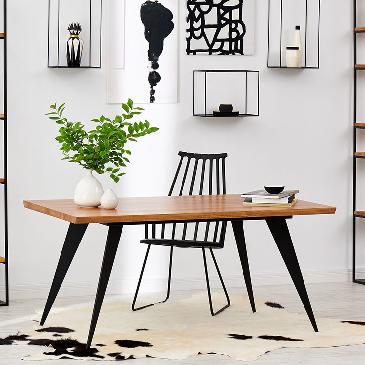 - Kolor: Naturalny dąb, który świetnie komponuje się z industrialnym metalowym wykończeniem.