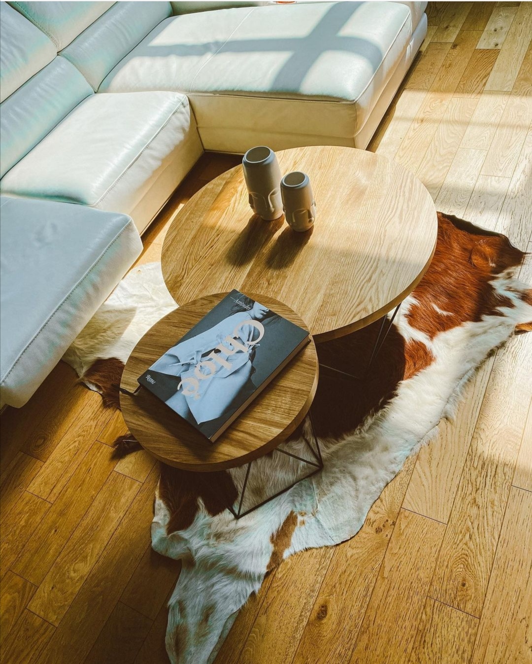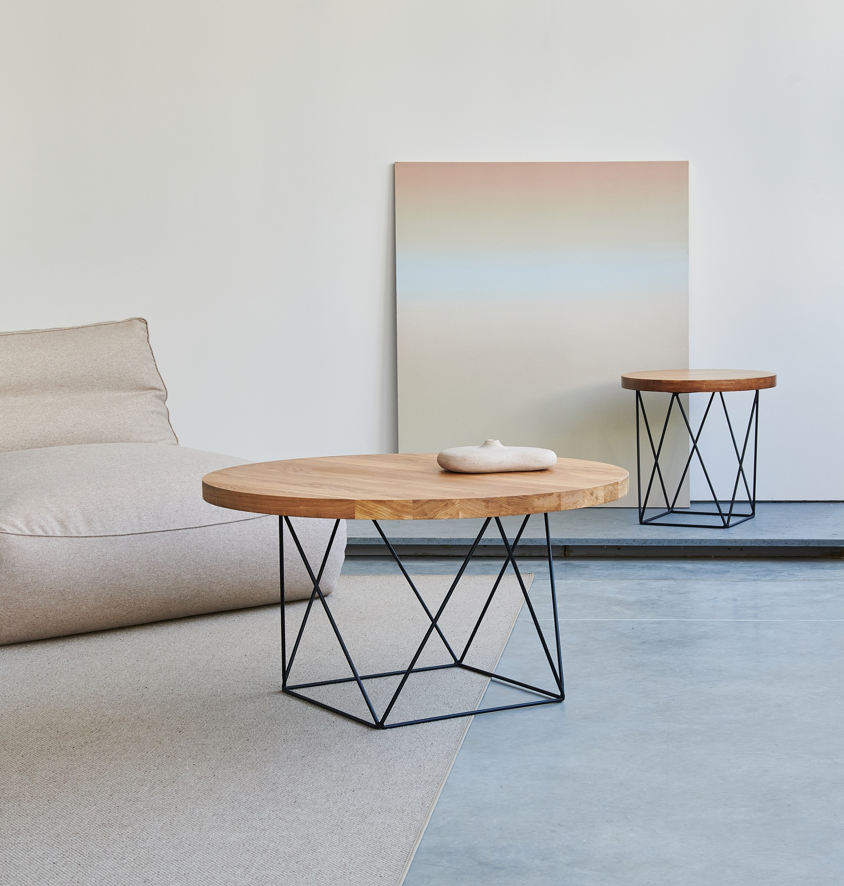 Na zdjęciu zestaw stolików o średnicach 50 cm oraz 80 cm.