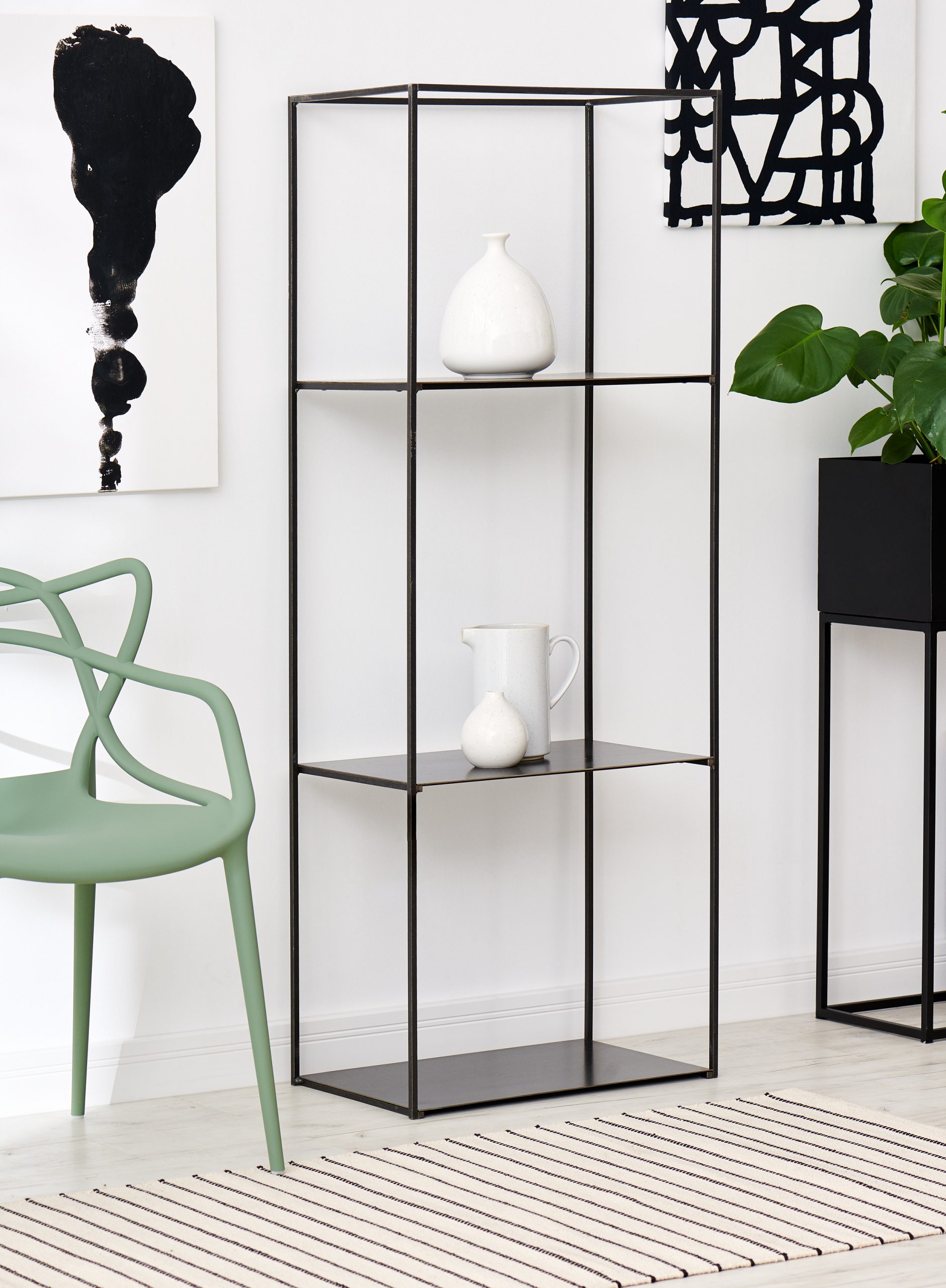 - Funkcjonalność: Regał idealnie sprawdzi się zarówno w salonie, biurze, jak i w przestrzeniach o charakterze komercyjnym.