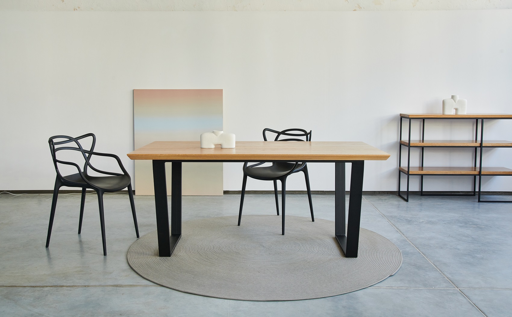 Blat: drewno dębowe o grubości 4cm, olejowany olejem twardym, wielokrotnie wygładzany.