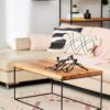 - Minimalistyczny design: Prosta, geometryczna forma stolika doskonale komponuje się z różnymi stylami wnętrz – od skandynawskich po industrialne, dodając im naturalnej elegancji.