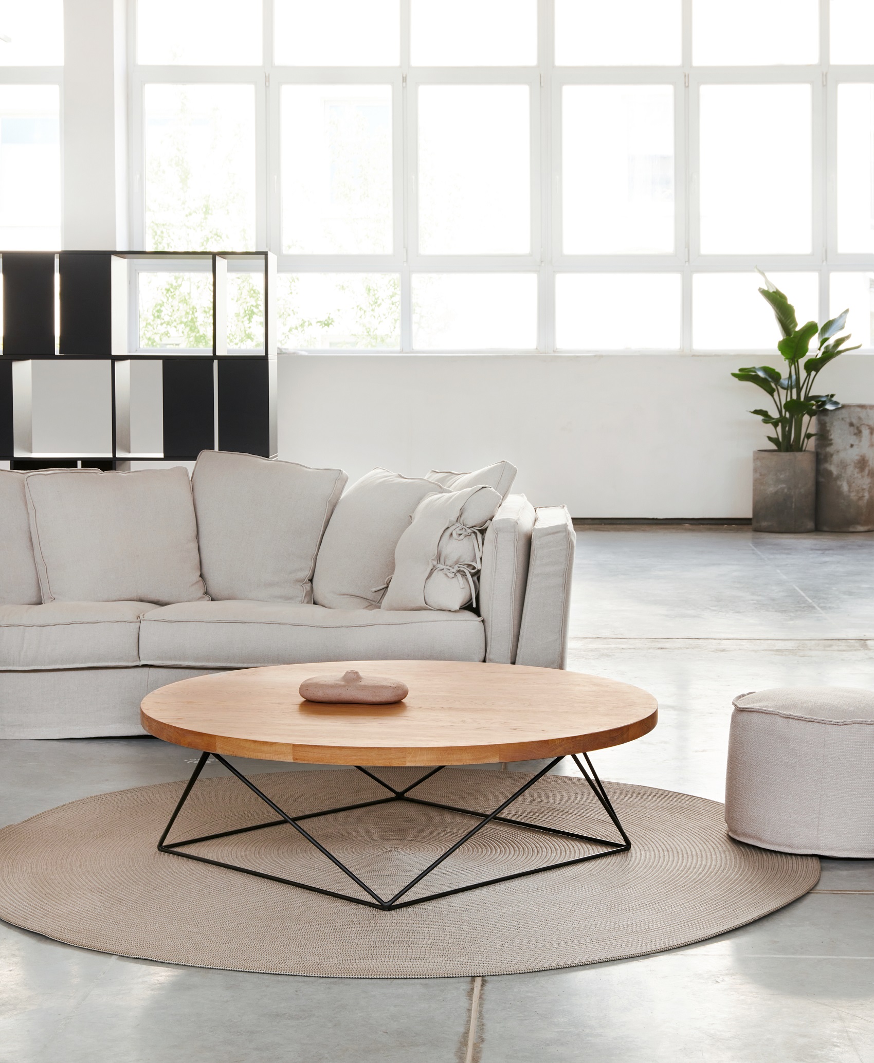 - Nowoczesny i minimalistyczny design: Okrągły drewniany blat połączony z geometrycznym, metalowym stelażem doskonale komponuje się z różnymi stylami wnętrz, od minimalistycznych po loftowe.